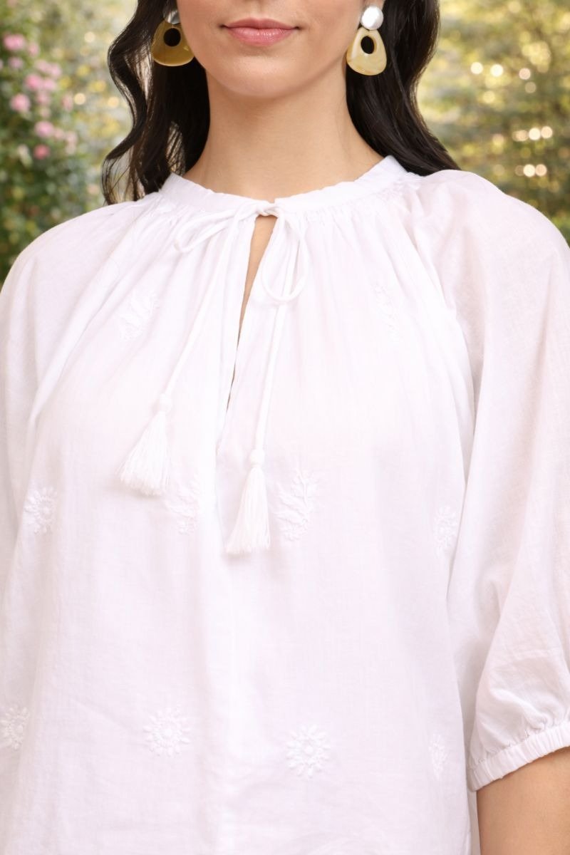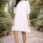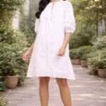 Upgrade your wardrobe with this soft and feminine white A-line dress. Designed with lightweight breathable fabric, this dress offers both comfort and elegance.